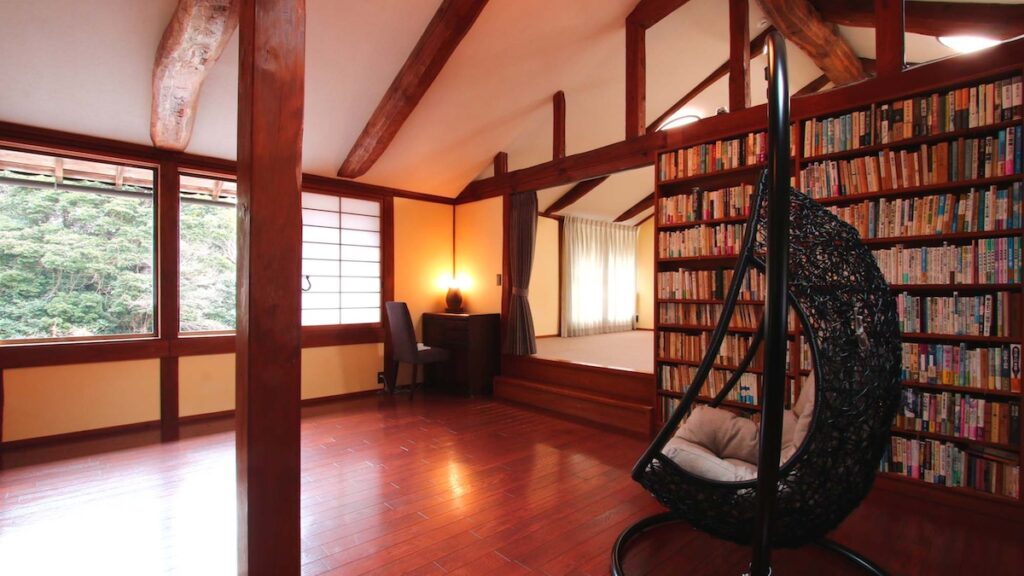 2階には特大の本棚があり、その大量の蔵書を眺めるだけでもうっとりとしてしまう楽しさ📖