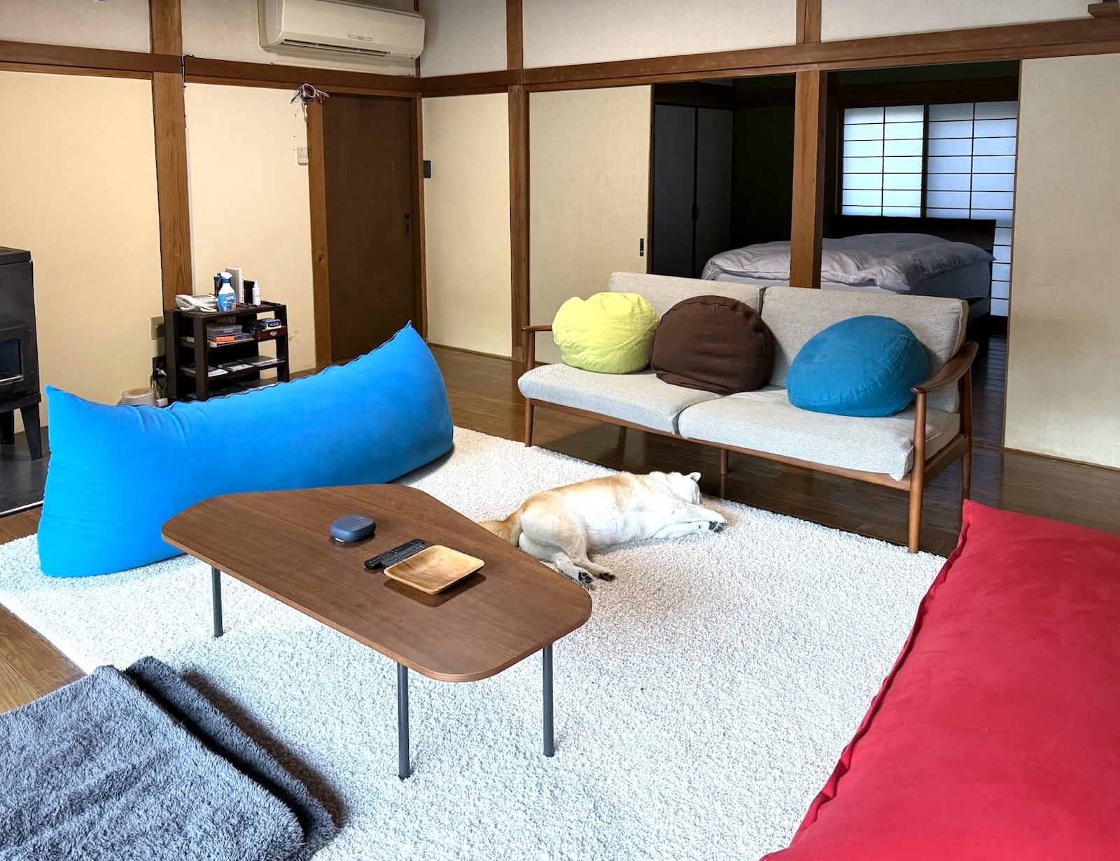 里やまの一軒家「HOSHIZORA」は、広々とした古民家を一棟丸ごと借りる方式の宿です。良識の範囲なら、誰に気兼ねすることなく、愛犬を室内で自由に放しても大丈夫👍