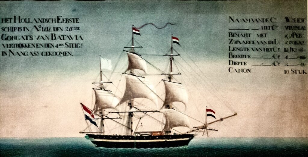 天空のラピュタを旅したガリバーは、祖国・イギリスに戻ろうとしますが、滞在先の大きな島国であるラグナグ王国(Luggnagg)からは故国・イギリスに戻る船便がなく、やむなく、日本経由で戻ろうとします。
