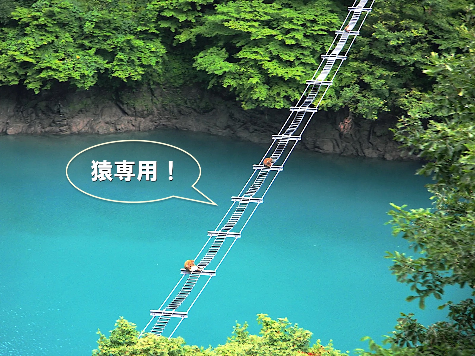 吊り橋を架ければ解決するだろうと予測できたのは、現在の猿専用吊り橋の場所に、関西電力の吊り橋があり、ニホンザルが移動に使っていたから。