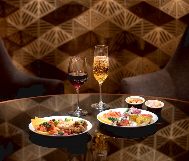 カクテルタイムはともにオードブルがメインですが、違うメニューが用意されるので、「ラウンジホッピング」する価値は十分。