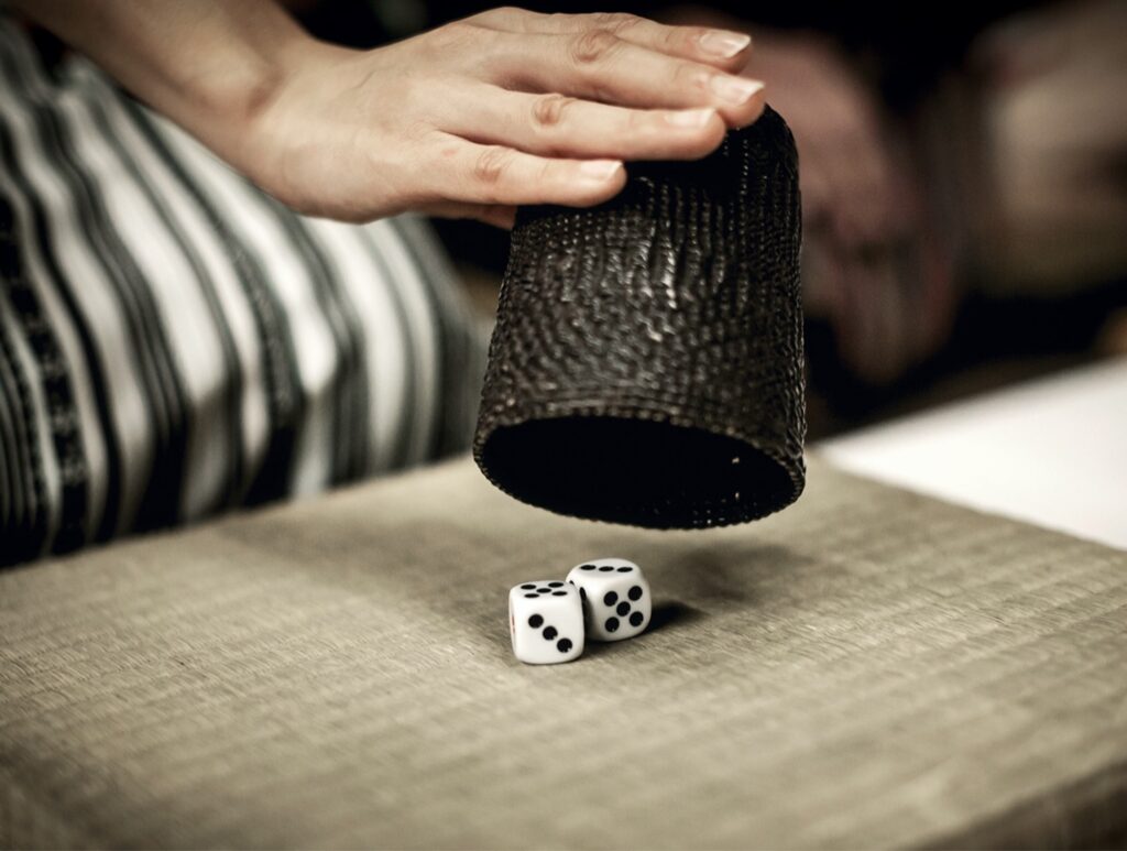 客は2つのサイコロの合計が偶数か奇数かを当てるというシンプルなゲーム。